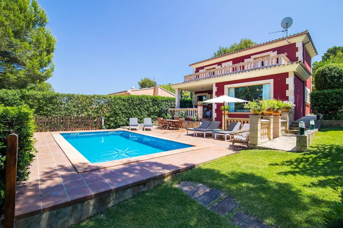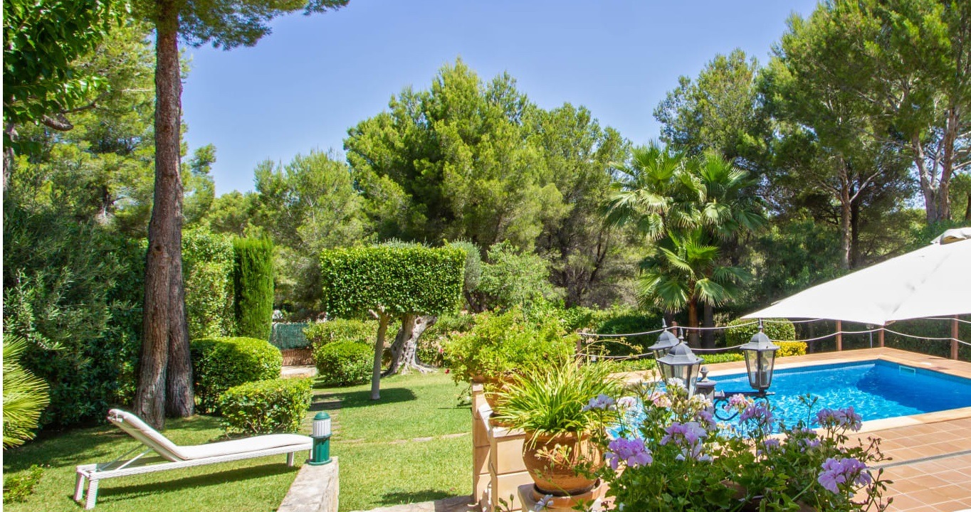 Excelente casa de vacaciones en Santa Ponça, cerca del mar, piscina climatizada, hermoso jardín