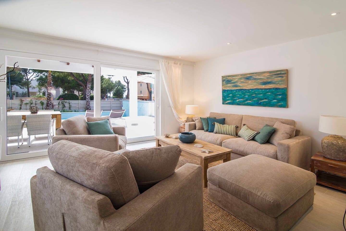 Nueva villa de vacaciones en una ubicación privilegiada: la playa y el puerto de Port Adriano a poca distancia.
